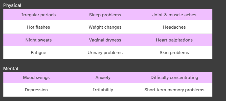 “As of 2020, nearly half of women around the globe were unaware of perimenopause and were surprised when it started.” Lack of information and resources can lead to misdiagnosis, mistreatment and misunderstanding of anyone who is experiencing symptoms. source